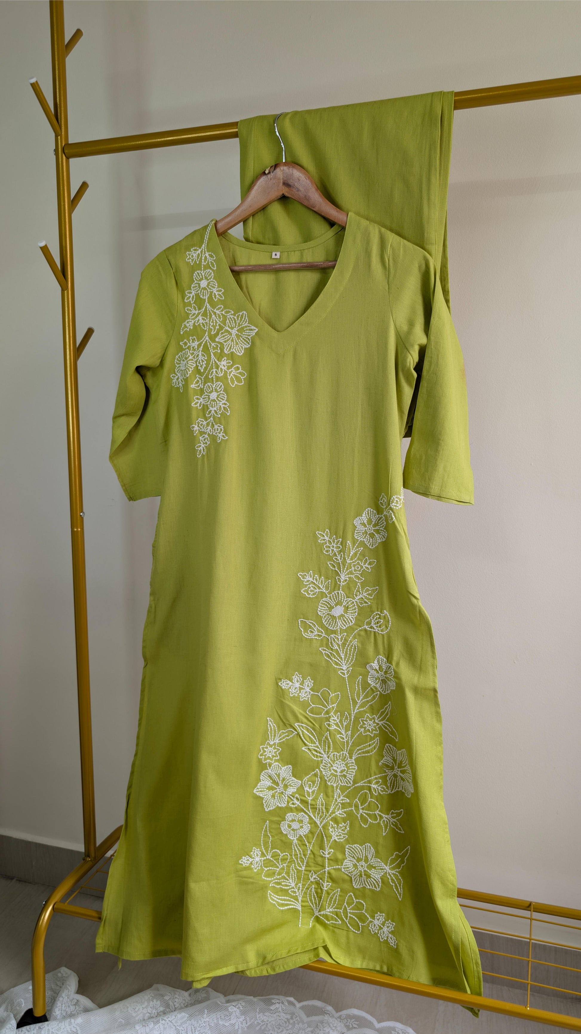 Elevate your ethnic wardrobe with our Embroidered Cotton Kurti Set, available in stunning shades of mustard yellow, blush pink, sky blue, and lime green. Each kurti features delicate white floral embroidery on breathable cotton fabric for a complete elegant look. Perfect for casual outings, festive celebrations, and office wear, this kurti set blends comfort with timeless style. Available in multiple sizes to suit every body type.
