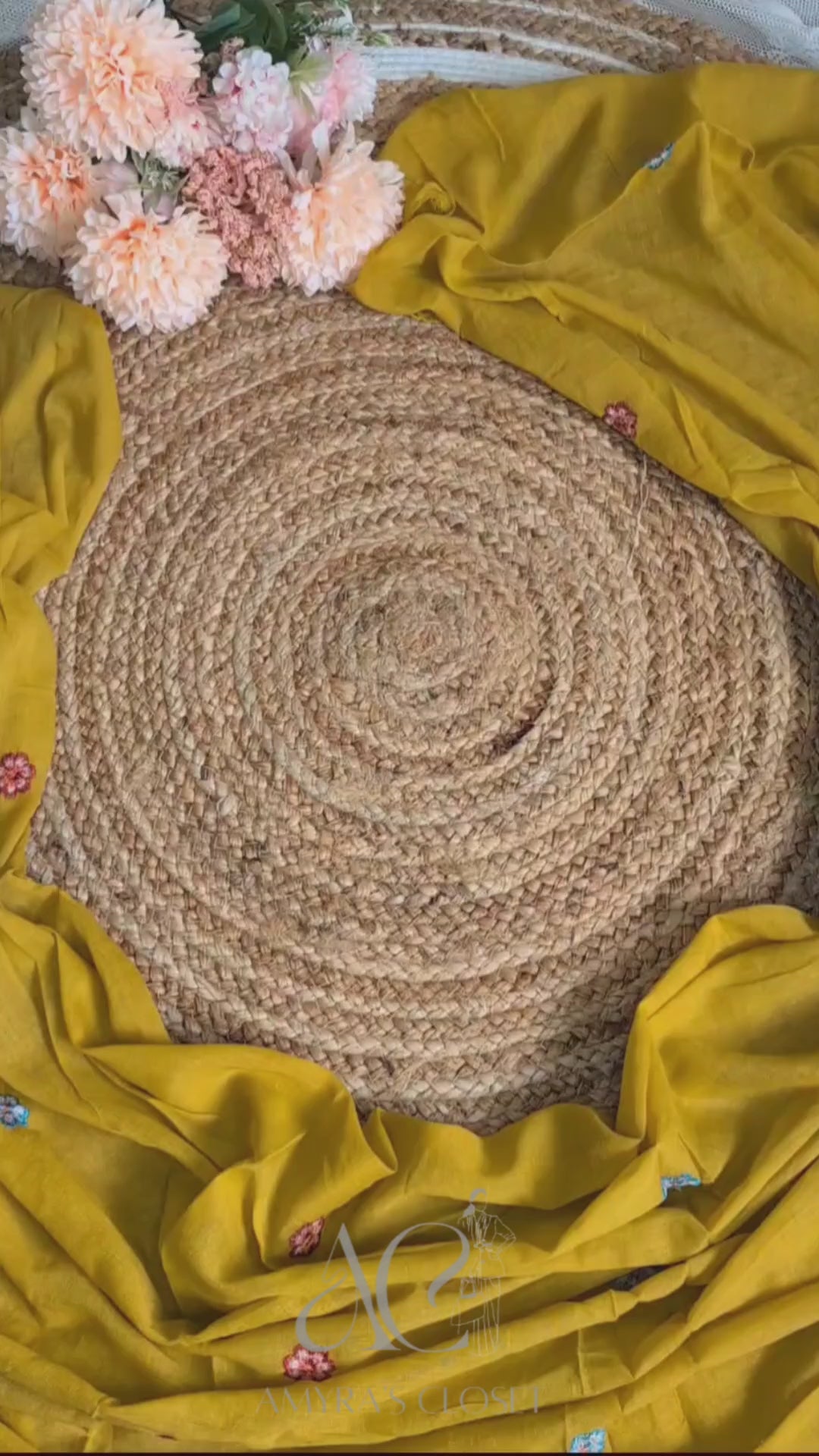 Premium Mustard Mul Cotton 3-Piece Kurti Set with Floral Thread Work (AC00007)