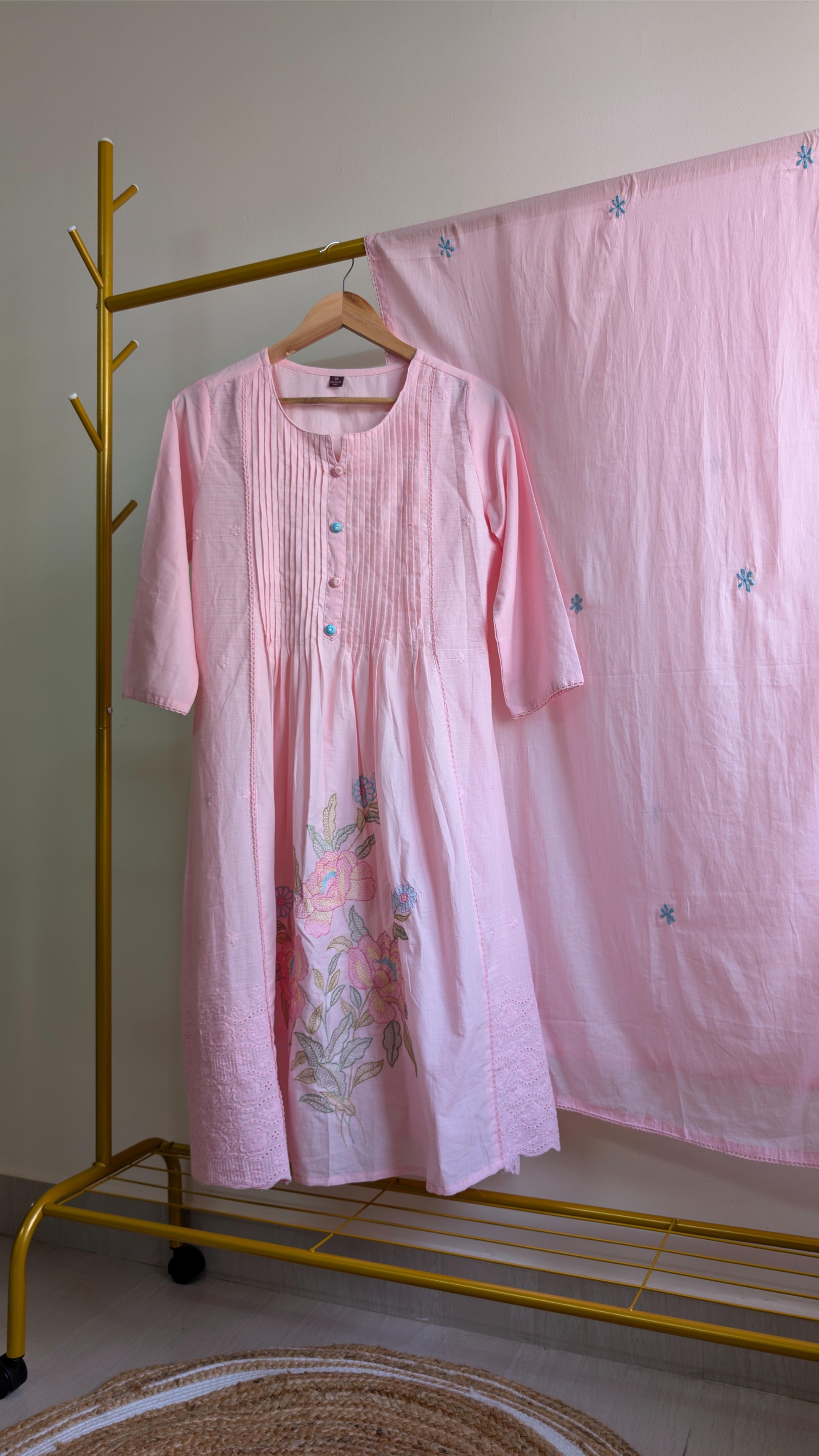 Premium Pink Mul Cotton Kurti with Embroidery & Pintuck Detailing (AC00012)